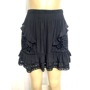 Ramy Brook Brit Mini Skirt Black Ruffled Eyelet Elastic Waist Lined S