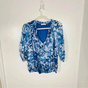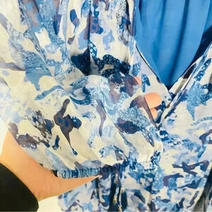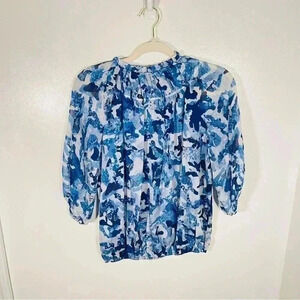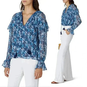 Ramy Brook Celeste Blouse Floral Printed Silk Metallic Bohemian Airy Ruffle