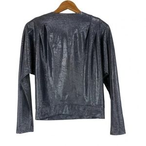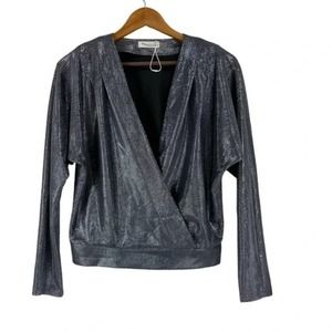 Ramy Brook Chainmail Knit Esther Faux Wrap Top Silver Metallic Size medium