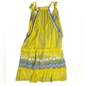 Ramy Brook dress, Cheri cover-up, embroidered mini dress, yellow sheer dress, beachwear, resort outfit, vacation style, luxury cover-up, drawstring waist dress, boho glam