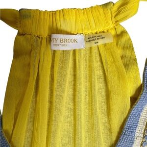 Bring the glow, girl. This Ramy Brook “Cheri” embroidered mini dress is a total beachside dream—lightweight, sheer, and effortlessly luxe. Featuring delicate blue and white embroidery on a sunny yellow base, it’s designed with a drawstring waist for a flattering fit and an easy, breezy silhouette.