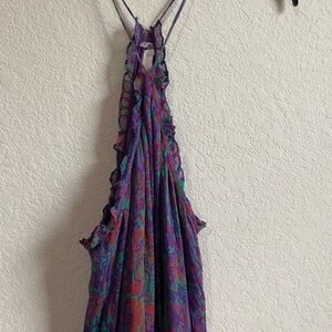 Ramy Brook Chloe Dress Botanic Print Elegant Flowy Smocked Halter Coquette L