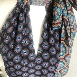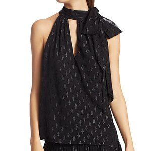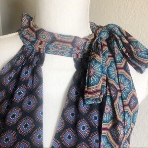 Bold, modern halter keyhole top with a defining side knot. Beautiful mixed pattern Ramy Brook halter tie neck blouse. Brand/size tag removed. Please see measurements for fit.