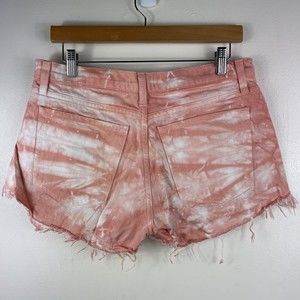 Ramy Brook Christy Boyfriend Tie Dye Pink Denim Cutoff Shorts Womens Size 26. Previously owned in good used condition, no major flaws, light signs of wear. Waist: 31" Rise: 10" Inseam: 2" Full Length: 9.5" measurements are approximate in a flat lay.