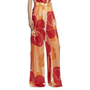 Ramy Brook Claudia Floral Satin High Rise Wide Leg Pants Size 2