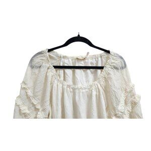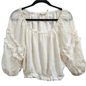 Ramy Brook Cream Ruffle Peasant Blouse M Puff Sleeve Boho Chic Crinkle Top SilkT top Romantic