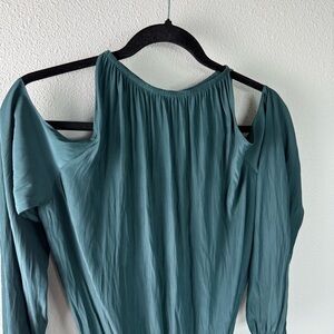 Ramy Brook Cut Out Drop Waist Lauren Teal Green Long Sleeve Dress Size XS