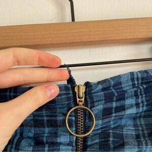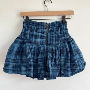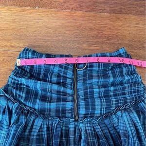 Ramy Brook Darla Pleated Mini Skirt Blue Plaid Zip Up Smocked School Girl