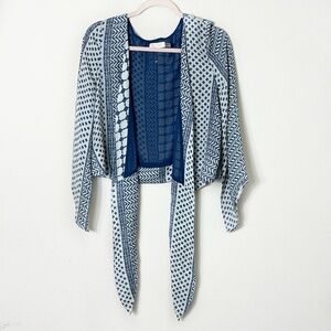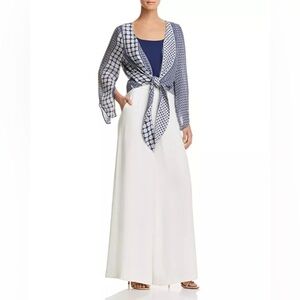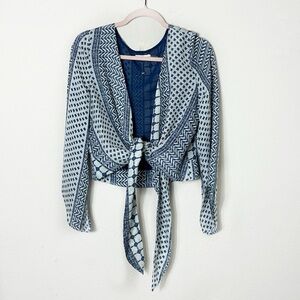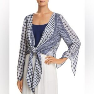 Ramy Brook Darnel 100% Silk Tie-Front Top Blue White size small