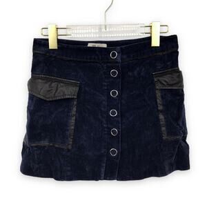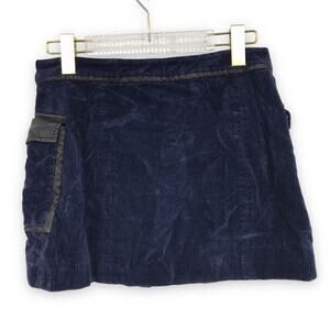 Ramy Brook Drea Mini Skirt 2 Corduroy Button Front Leather Trim Pocket Snap Navy
