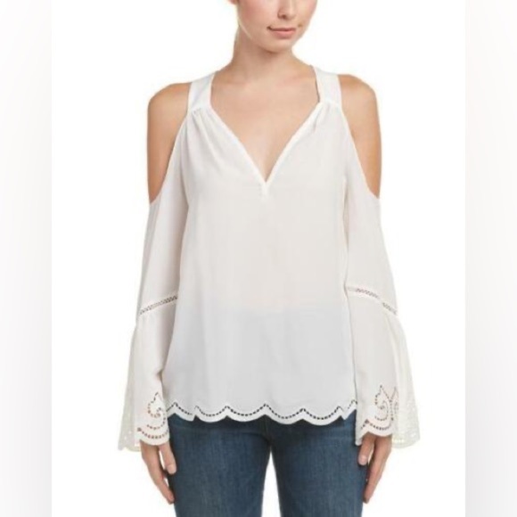 Ramy Brook Drew Cold Shoulder White L/S Blouse NWT Size Large