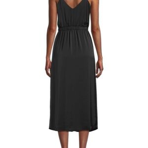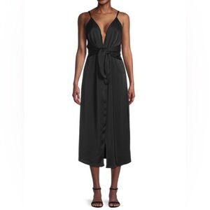 A plunging neckline and fluid wrap silhouette define the Nicki dress by Ramy Brook. Tied at the waist with adjustable spaghetti straps, it’s finished with a front slit and elasticized back for comfort and ease.