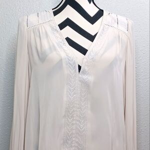 Ramy Brook Embroidered V-Neck Satin Long-Sleeve Blouse.