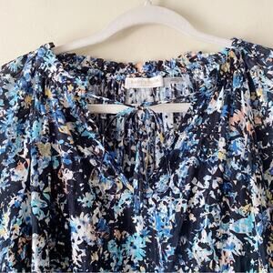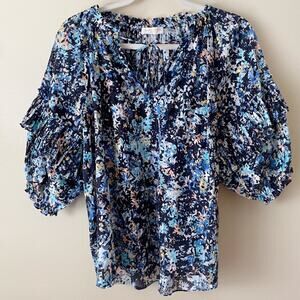Ramy Brook | Eugenia Blouse Top Pleated Puff Sleeves Floral Blue Small