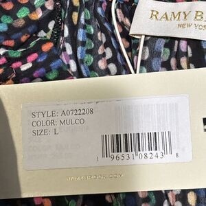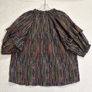 Ramy Brook Eugenia Ruffle Puff Sleeve Top Blouse Large Dot Stripe Split Neck NWT