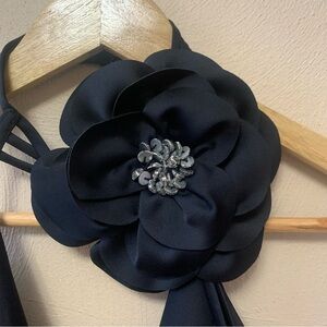 Ramy Brook Evie Flower Halter Satin Minidress in Black Size 2 NWT New
