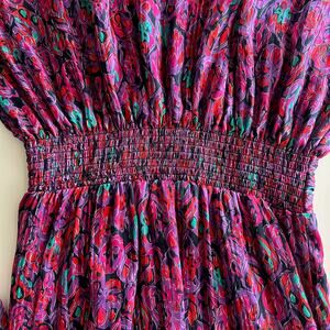 Ramy Brook Gessy 100% Silk Lace Up Neck Shadow Stripe Pink Multi Mini Dress XS
