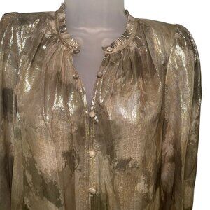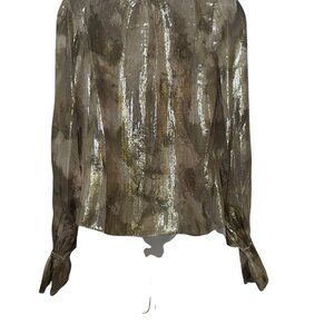 Ramy Brook Giselle Metallic Blouse Gold Bronze Sheer Long Sleeve Top XXS NWT