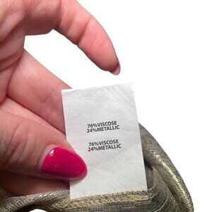 New with tags. Elevate your wardrobe with the stunning Ramy Brook 'Giselle' blouse in the luxe "BLGD" (bronze/gold) metallic finish. This semi-sheer top features an abstract shimmer pattern, elegant button front, and gathered detailing at the neckline and cuffs. Designed in a rich, lightweight viscose blend with metallic threading for a glamorous look that catches the light. Size: XXS Color: BLGD (Gold/Bronze) Retail Price: $345 Fabric: 76% Viscose, 24% Metallic Measurements (approx.): Pit to Pit: 18" Waist: 36" Sleeve Length: 26" Length: 22.5" Perfect for holiday parties, special occasions, or adding a touch of shine to everyday looks. Style it with denim or tailored trousers for an effortlessly chic ensemble. Condition: New with tags. No flaws.