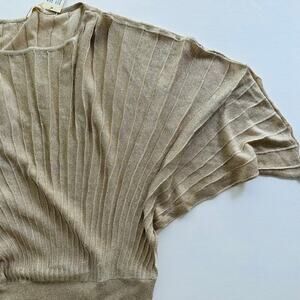 Ramy Brook Gold Batwing Blouse NEW Size Large Pleated Beach Summer Cover-Up
