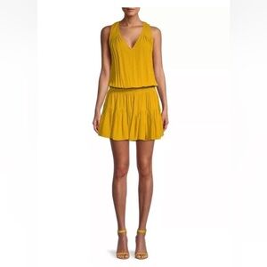 Ramy Brook Golden Yellow Textured Perry Mini Blouson Sleeveless Dress Sz L