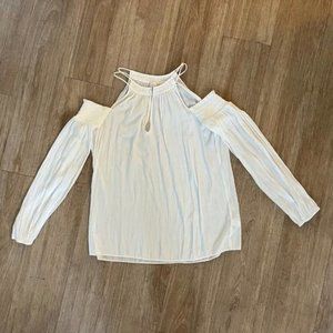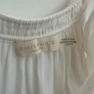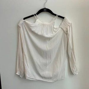 White long sleeve cold shoulder top by Ramy Brook, size xxs. In excellent condition, no visible stains or tears. Material is 100% polyester and super lightweight, perfect for summer.