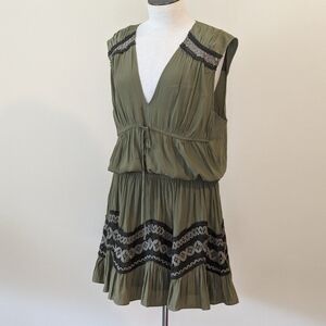 Ramy Brook Isra Mini Dress Sleeveless Deep V Neck Crochet Detail Clover XL NWT