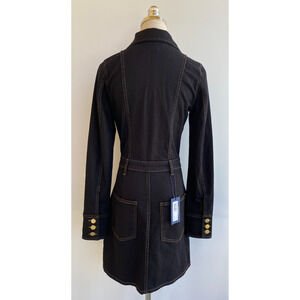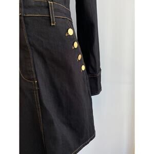 The kind of easy and flattering dress you'll be reaching for all season long. Introducing the Jade Long Sleeve Denim Mini Dress by Ramy Brook, a chic black piece Crafted from a cotton blend with long sleeves, this mini dress features sophisticated gold button details and contrasting stitching. The item does not include a belt, the model is simply demonstrating the belt loop feature.