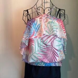 NWT Ramy Brook Jules Top in Multicolor in size Large. halter top shimmers in a metallic palm print.