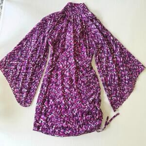 Ramy Brook Kamila Purple Ruched Abstract Tie Neck Bell Sleeve Dress NWT | Size 4