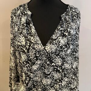 Ramy Brook Landa Floral Printed Blouson Mini Dress Small Black/White