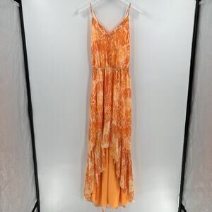 Ramy Brook Laura High Low Orange Maxi Dress Strappy Criss Cross Tie Size Medium