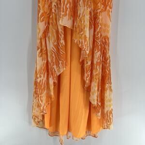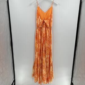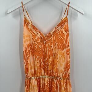 Ramy Brook Laura High Low Orange Printed Maxi Dress Sleeveless Strappy Criss Cross Tie Back V-Neck Summer $595 Retail