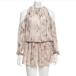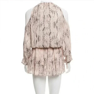 Ramy Brook Lauren Cream Snake Print Cold Shoulder Smocked Silk Dress Size S