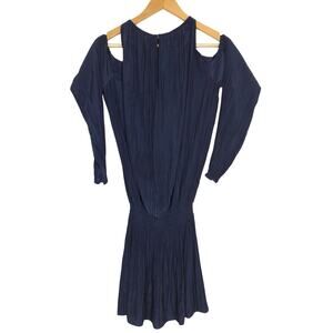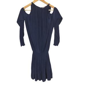 Ramy Brook Lauren Dress Long Sleeve Cold Shoulder Mini Blouson Navy Blue Small