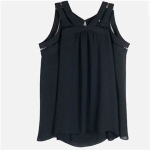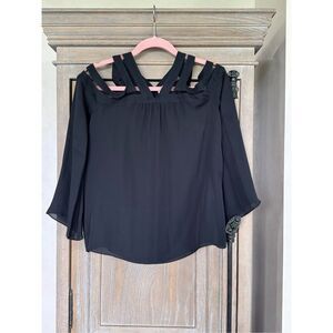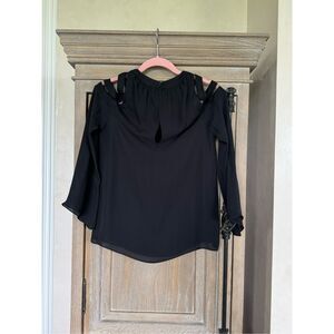 Ramy Brook Lex Cold Shoulder Sleeve Silk Blouse, Black Size Medium