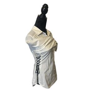 Ramy Brook Lila Corset Side Lace Up Button Down Top Optic White & Black