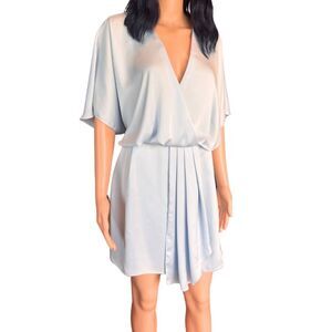 Ramy Brook Lillie Mini Dress Large Blue Silky Pleated Cocktail Party Wedding