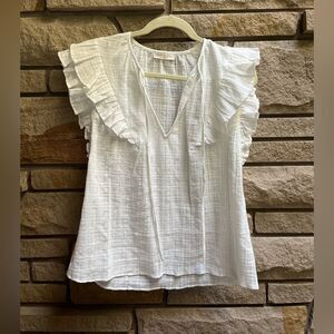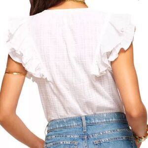 Ramy Brook London Flutter Sleeve Blouse Ivory White Cotton