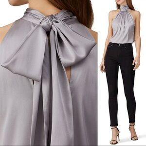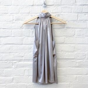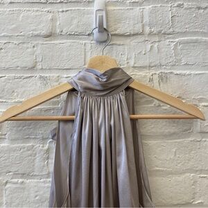 Ramy Brook || Lori Silk Halter Top High Neck Bow Crystal Gray Silver XS NWT