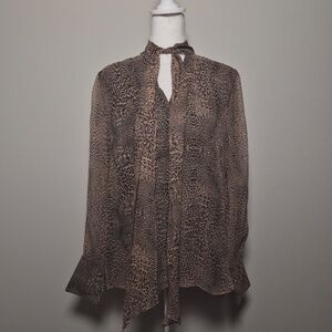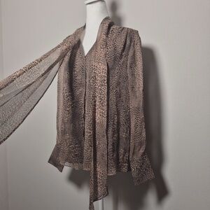 Ramy Brook Luxury Designer 100% Silk Leopard Neck Tie Scarf Top S MSRP $425