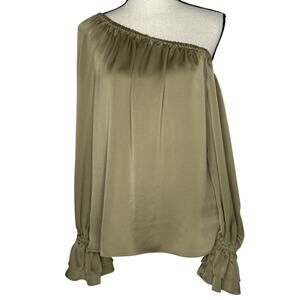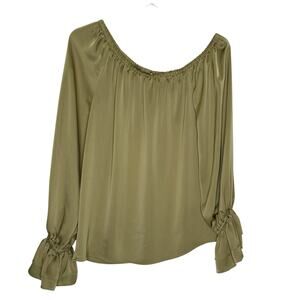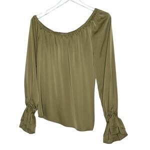 Ramy Brook M Murphy Off the Shoulder Ruffle Sleeve Top Satin Olive Gray Flowy