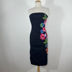 The Ramy Brook Magnolia Embellished Midi Dress in Navy Pinstripe is a stylish and elegant dress perfect for formal and business occasions.