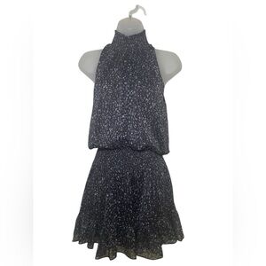 Ramy Brook Mahala Mini Dress Small NWT Black Gray Animal Print High Neck Metalli