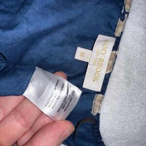 Ramy Brook Medium Barbara Dress Puff Sleeve Navy Tan Floral Boho Pattern EUC