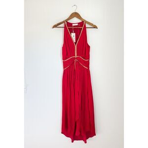 Ramy Brook Melanie Smocked Midi Dress Red Rouge Beaded NWT Size Small