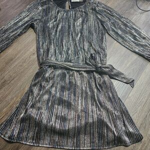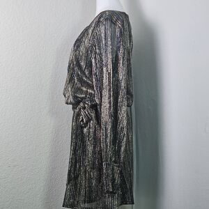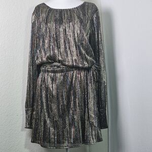 Ramy Brook Metallic Stripe Long Sleeve Belted Mini Dress Sz L