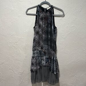 Ramy Brook Monae Python Houndstooth Print Mini Silk Halter Dress Size XS