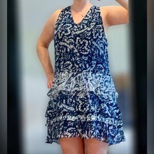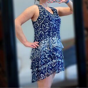 Ramy Brook Navy Blue & White Paisley Layered Mini Dress - 100% Silk