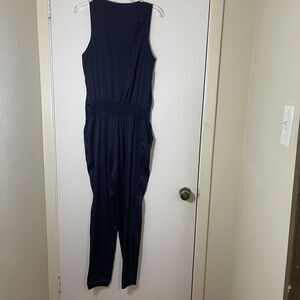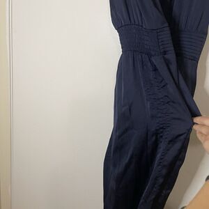 Ramy Brook Navy satin Sleeveless vneck jumpsuit size medium